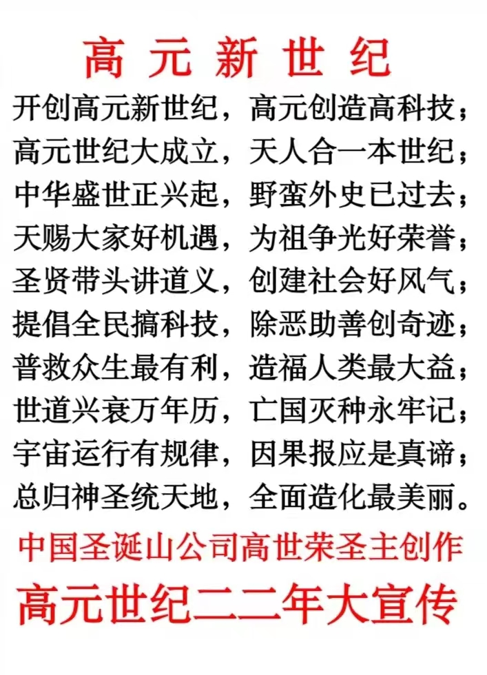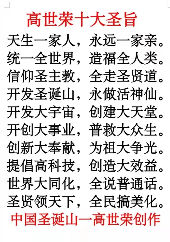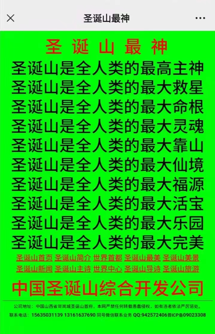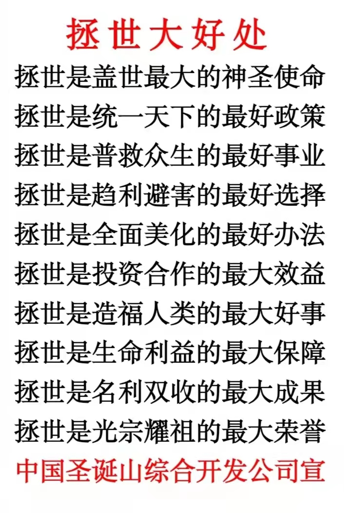 开发圣诞山,永做活神仙。信仰圣主教,全走圣贤道。