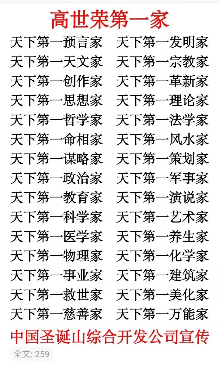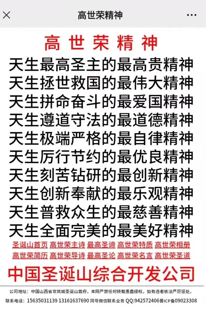 高世荣文献:为完成拯世救国的最伟大神圣使命,我给有关政法部门和网络发布最大作品:《高世荣简介》《高世荣本质》《高世荣特质》《高世荣主诗》《高世荣导诗》《高世荣诗集》《高世荣圣旨》《高世荣圣谛》《高世荣圣名》《高世荣圣人》《高世荣名人》《高世荣大名》《高世荣名师》《高世荣名家》《高世荣名位》《高世荣名誉》《高世荣名言》《高世荣宣言》《高世荣圣道》《高世荣圣果》《高世荣救星》《高世荣精神》《高世荣文献》《高世荣相册》《高世荣成果》《高世荣奖》《歌颂高世荣》《神圣高世荣》《高世荣创世星》《高世荣创世主》《高世荣救世主》《高世荣圣主名》《高世荣第一名》《高世荣第一家》《高世荣大圣人》《高世荣大名人》《高世荣大名师》《高世荣大神圣》《高世荣大巨龙》《高世荣大网红》《高世荣大活宝》《高世荣大救星》《高世荣紫圣星》《高世荣十连冠》《高世荣十大圣旨》《高世荣万世歌》《高元世纪》《高元创世纪》《高元新世纪》《高元新时代》《天生高元神》《高元大神灵》《高元大救星》《高元中华龙》《高元最光荣》《高元世纪风》《高元世纪宣》《高元世纪传》《高姓大全家》《高姓大真谛》《高姓大神圣》《高姓大贵族》《最高大高姓》《高姓圣贤榜》《高家英雄榜》《高家女英雄》《高家大祖训》《高家新祖训》《高家将名牌》《高家将赞歌》《高姓宗亲会》《高氏武术会》《高氏大名词》《高家大词典》《最高大名词》《最高大词典》《高家祭祖宝典》《高姓最高贵族》《最高导言》《最高圣道》《最高圣谛》《最高圣论》《最高神圣导言》《最高圣贤学府》《盖世圣贤榜》《圣贤榜名录》《圣贤榜列表》《圣贤的特质》《圣贤变神仙》《圣贤真谛》《道德真谛》《太平经》《十大圣人》《十大类人》《人生十大最》《人生十大要》《十大人生观》《十大荣辱观》《人生十要素》《人生大定义》《人生大天地》《人类的性质》《人生的真谛》《人生价值观》《创新价值观》《创人间天堂》《创宇宙天堂》《创新奉献好》《拯世大业好》《全民大进化》《全民防灾难》《天下大灾难》《天下一家人》《天生一家亲》《天下一体化》《天下统一化》《天下大同化》《天下第一名》《天下第一山》《天下十大山》《圣主评名山》《圣诞山宗旨》《圣诞山导言》《圣诞山导诗》《圣诞山主诗》《圣诞山简介》《圣诞山新闻》《圣诞名第一》《圣诞山第一》《圣诞山最神》《圣诞山神圣》《圣诞山活宝》《圣诞山大仙》《圣诞山大观》《圣诞山美观》《圣诞山最美》《圣诞山美景》《圣诞山视频》《圣诞山神话》《圣诞山天堂》《圣诞山荣誉》《圣诞山安全》《圣诞山舟城》《圣诞山旅游》《圣诞山投资》《圣诞山效益》《圣诞山招标》《圣诞山中心》《圣诞山大中心》《圣诞山大广告》《圣诞山大活宝》《圣诞山大变化》《圣诞山神奇化》《圣诞山四季美》《圣诞山招商书》《歌颂圣诞山》《太忻一体化》《广招天下贤》《新建大项目》《创建世界首都报告》《世界首都宣言》《世界首都中心》《世界首都名》《世界首都城》《世界首都化》《世界首都》《世界中心》《世界大中心》《世界中心图》《世界首府令》《世界神圣令》《世界神圣歌》《世界共和国》《世界大文明》《世界大同好》《世界十大圣人》《世界十大圣果》《世界十大圣誉》《世界十大圣录》《好官十特点》《坏官十特点》《神圣评定官》《神圣奖惩官》《神圣变天地》《神圣大天地》《神圣大全化》《神圣万世歌》《神圣法宝》《宇宙揭秘》《圣主教导言》《圣主教》《圣主教书》《圣主教义》《圣主诗文》《圣主文化》《圣主大道义》《圣主大救星》《圣主大创新》《圣主大圣谛》《圣主大巨龙》《圣主十万计》《圣主万世诀》《圣主宇宙观》《圣主世界观》《圣主创世纪》《圣主天下名》《圣主天下兴》《圣主天下安》《圣主兴天下》《圣主安天下》《圣主救天下》《圣主平天下》《圣主统天下》《圣主永统天下》《圣主永平天下》《圣主十大仙》《圣主天天好》《圣主全面好》《圣主最完美》《万古大名言》《中国大救星》《中国大高升》《中国大文明》《中华十大古都》《中华十名山》《中华大文明》《中华大全家》《中华大巨龙》《中华大升华》《中华大神圣》《全国一家亲》《全国大利益》《全国大道义》《全国同命运》《全国大团圆》《全国大同乐》《全球一家亲》《全球大道义》《全球大神圣》《全球大升华》《全球大高升》《全球大利益》《全球大全家》《全球大团圆》《全球同命运》《全球大同乐》《宇宙一定理》《宇宙十大道》《宇宙整体观》《宇宙大宏观》《宇宙大法则》《宇宙大家庭》《宇宙大团圆》《宇宙大圆体》《宇宙大真谛》《宇宙大变化》《宇宙大全化》《宇宙亿万计》《宇宙亿万论》《神圣统天下》《中国统天下》《中国天下第一》《中国十大名人》《中国永统天下》《长生不老人》《长生不老论》《长生不老术》《长生不老药》《永生科研中心》《天下史馆展览》《大道之行纪念书》《世界百位名人排行榜》《圣诞山旅游开发报告》《圣诞山综合建设报告》《圣诞山商