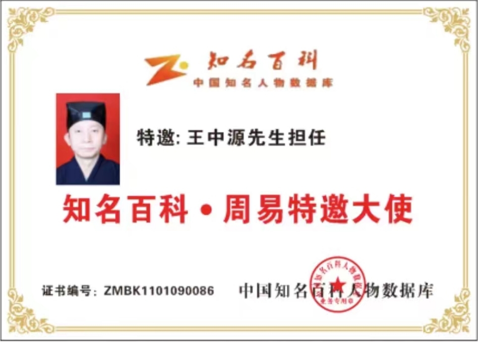 中国知名人物数据库-周易特邀大使-王中源