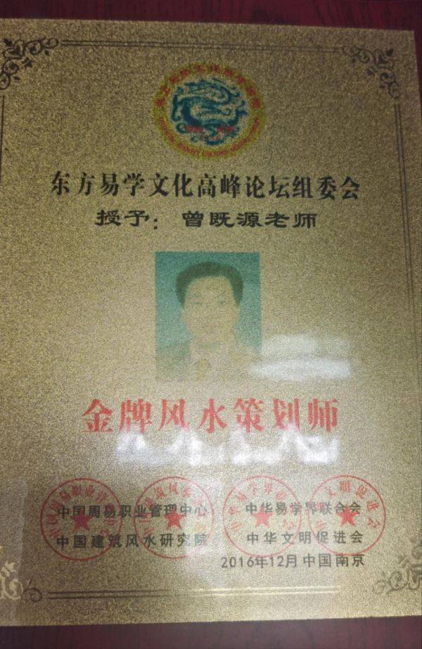 曾既源,湖南湘乡人,生于1956年,本人系(湘军)曾国藩后裔七十三派第四代孙,自幼学习曾氏传人曾子圣人之丛书,受曾国藩的家风家训之影响,自学自律,八十年代初,自习学艺建筑设计,结合风水入门,连续十多年的深造,对建筑风水布局、设计有潜在的系统策划调理之作;九十年代初中期,在湖南、广东、云南等地,为造福社会环境生态等,对国学文化有潜心研究与弘扬,在全国各地拜师访友参加多层次的国学论谈及易学文化研究论谈等各项大型活动,历时30余年的建筑学、易经与风水、国学、姓名学深受网群网友粉丝们信任。